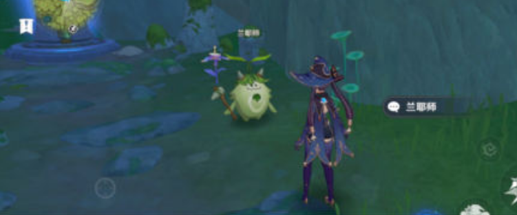 传送到神像旁边,兰耶师直接就在那儿站着,挺好找的。 -